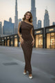 Made from a smooth, stretchable fabric, this bodycon maxi dress offers a comfortable yet structured fit that flatters the figure. The floor-length design adds graceful movement and sophistication, ideal for evening events, formal occasions, and special celebrations.